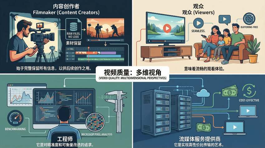 本文让我们从四个关键利益相关者的视角来探讨视频质量的感知:内容制作方、终端观众、流媒体服务商以及工程师。