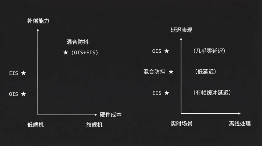现代旗舰手机(iPhone、Pixel、三星 S 系列)普遍采用 OIS + EIS 混合方案。