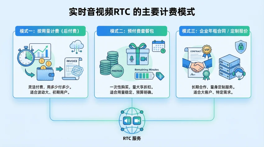 本文系统梳理国内主要实时音视频(RTC)SDK 厂商的计费模式,分析各模式的适用场景与优缺点,帮助开发者和技术决策者在选型时做出更合理的成本规划。